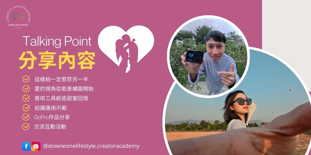 想用更有溫度的方式紀錄與另一半的甜蜜時光嗎?這場 GoPro免費講座 絕對不能錯過!我們特別邀請 GoPro台灣區大使 Linke 林克,親授如何用GoPro捕捉專屬於你們的浪漫瞬間,不論是日常約會、旅行探險,還是特別紀念日,都能透過愛的視角留下最動人的畫面。